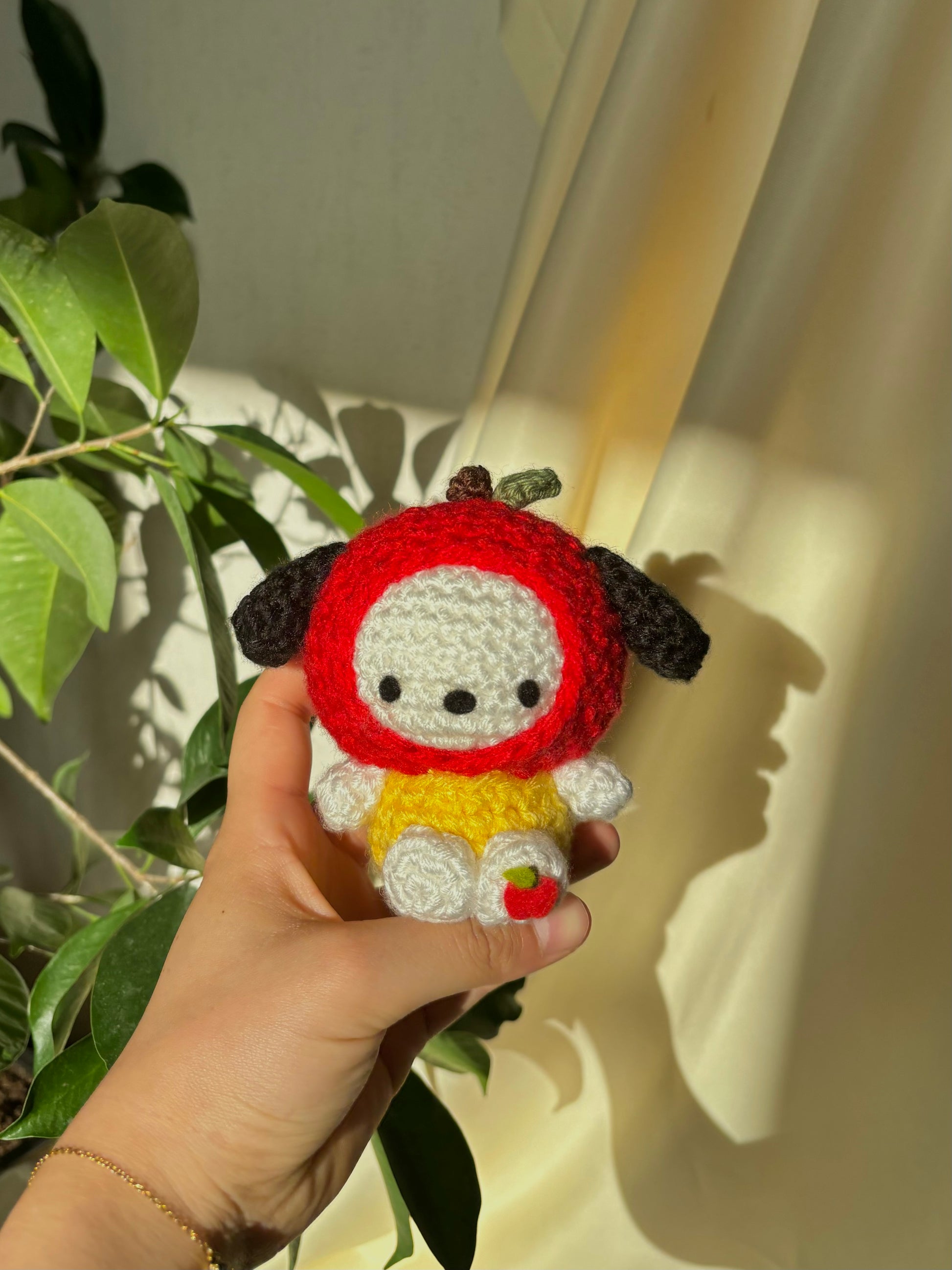 - Apple dog keychain, made with 5mm acrylic yarn!